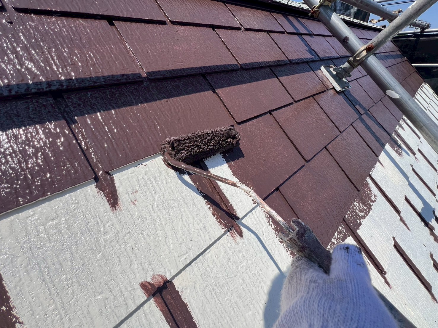 ・屋根塗装4回塗り(日本ペイント グランセラベスト2液ファイン遮熱 ナポリブラウン