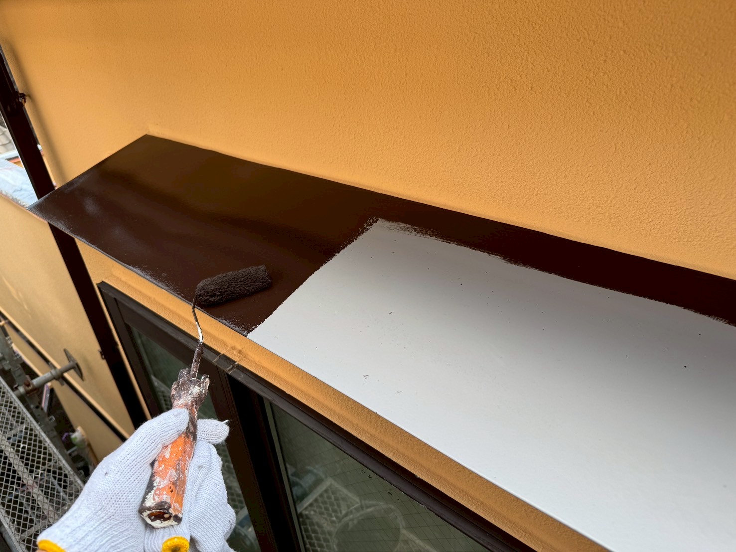 ・付帯部塗装(日本ペイント グランセラトップ2液ファイン チョコ)