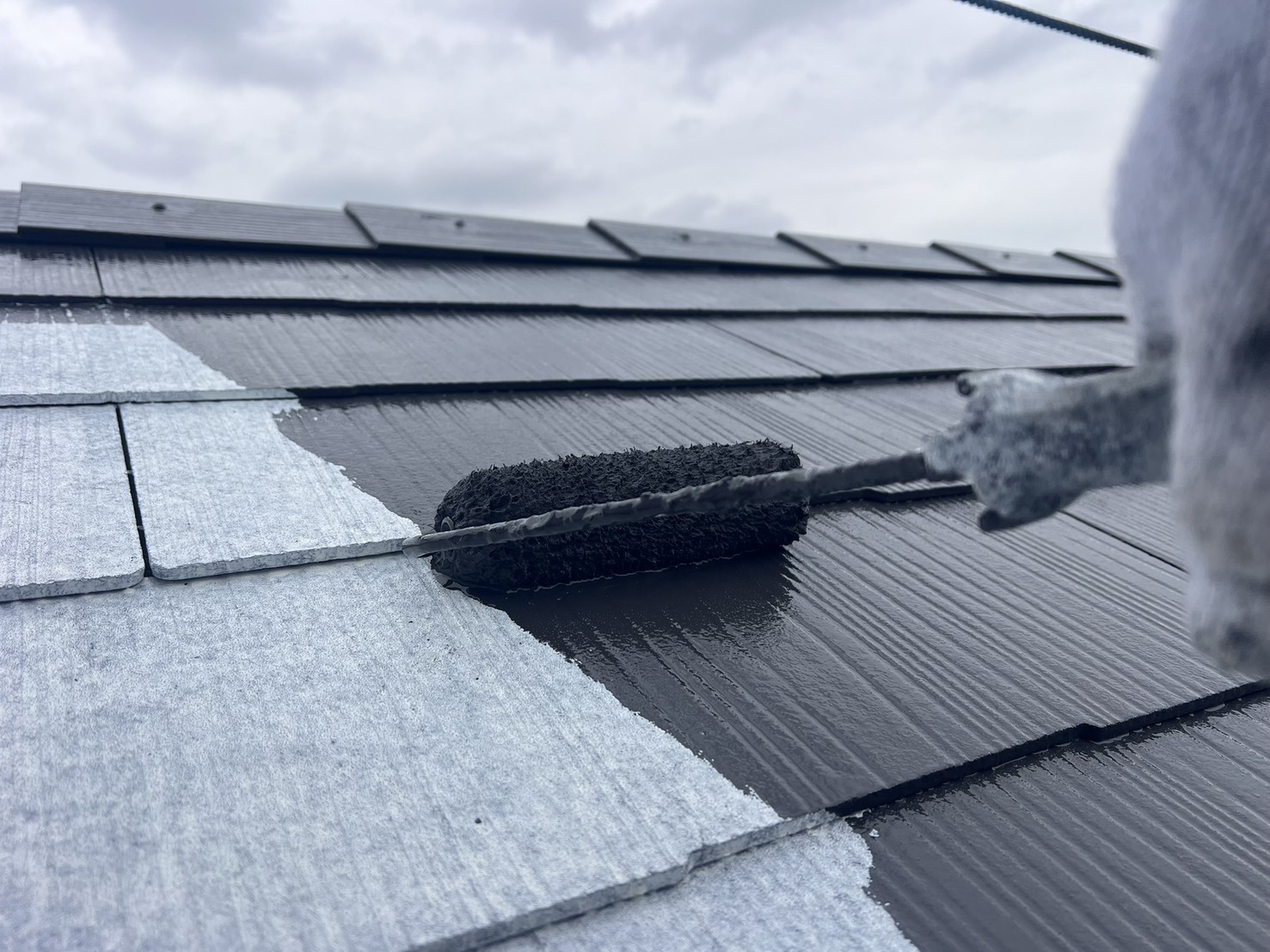 3. 上塗り完了 — ムラなく均一な塗膜で、美しく耐久性のある屋根に仕上がりました。